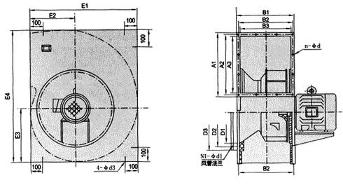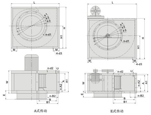 DDL-Ⅰ型風機分A式直聯(lián)傳動和E式皮帶傳動兩種結(jié)構(gòu)型式,采用高效前傾多翼式離心葉輪,同一機號風量耿大。配用防爆電機和鋁(不銹鋼)材質(zhì)葉輪,可制成防爆型。